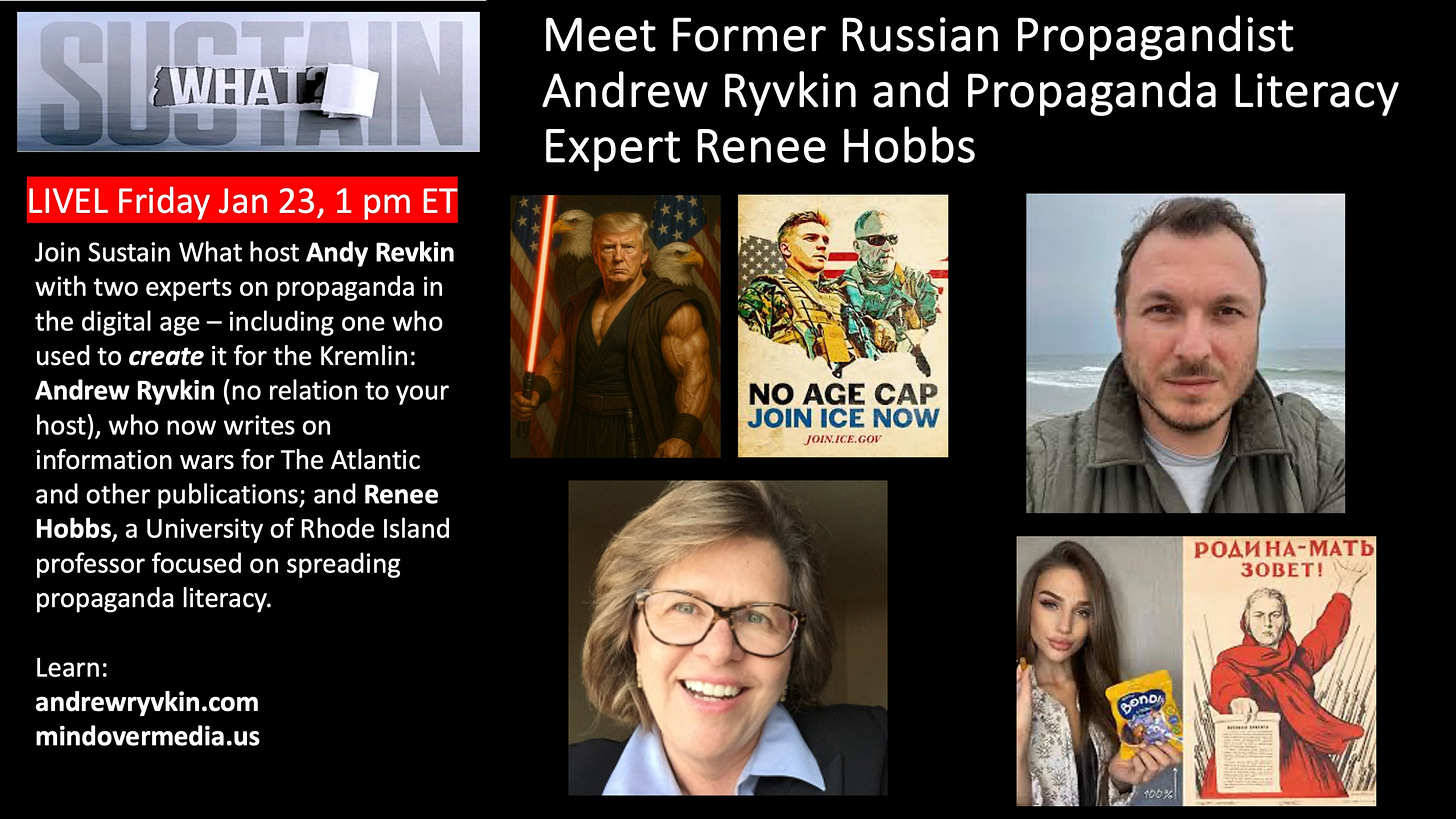 But make sure to watch below as well. On Sustain What I just introduced Hobbs live to Andrew Ryvkin, a Russian-born writer and analyst focused on propaganda, authoritarian rule and international relations with a special level of expertise: he spent many years producing propaganda inside the Kremlin’s multi-layered media system.