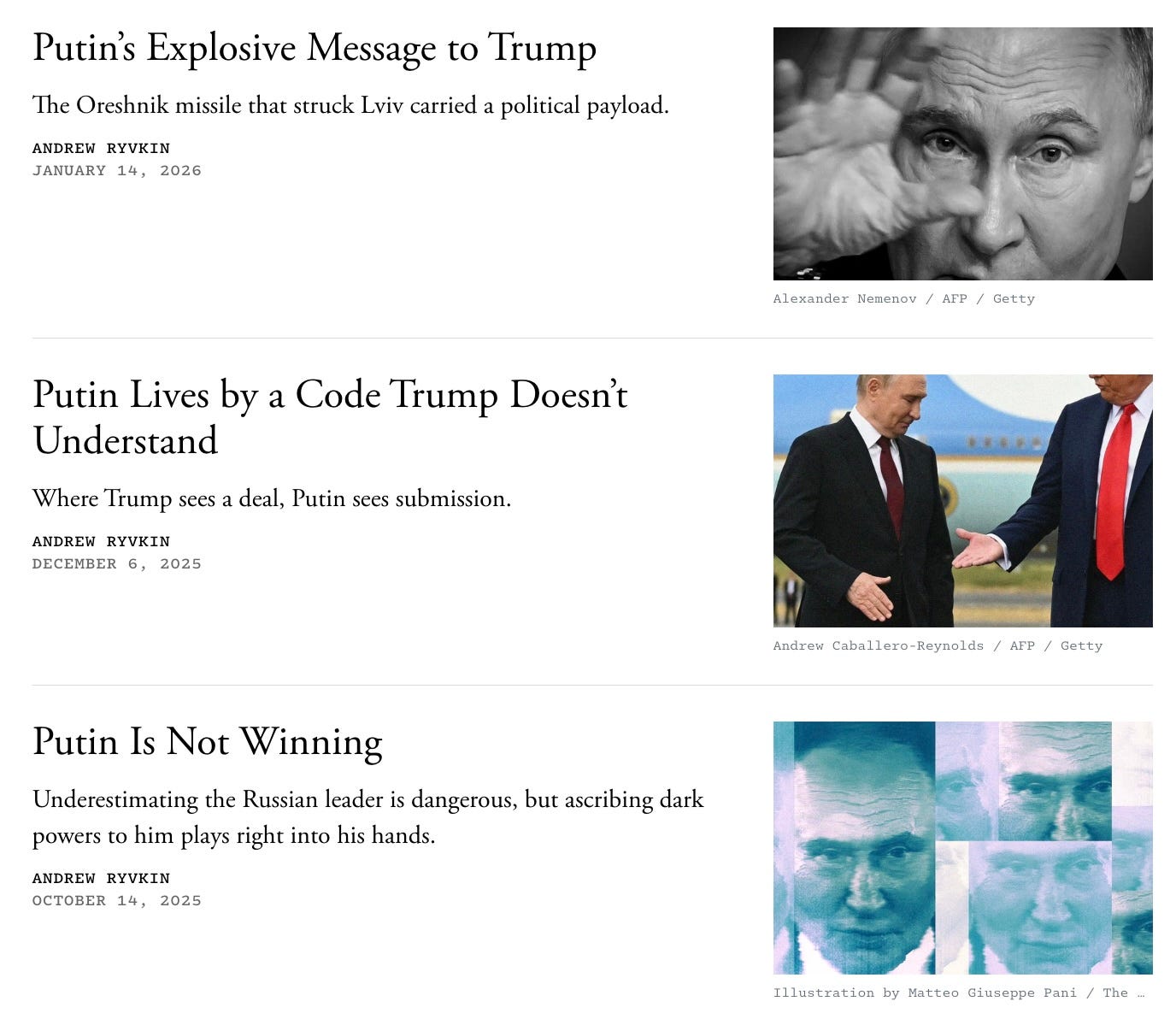 Make sure to subscrribe to Andrew Ryvkin’s Substack letter of course. Start with his origin story: I used to work for the Kremlin…