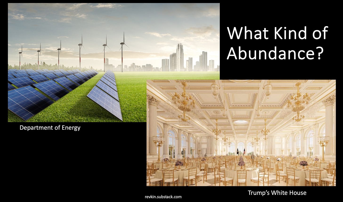 A successful effort to “reassert democratic control over technocratic systems” could easily derail the energy-abundance agenda, for instance. But in the absence of such governance guardrails, who’s to say that abundance wouldn’t include Trumpian ballrooms?