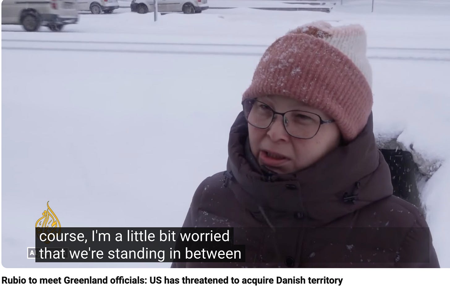 Keep in mind Greenlanders strongly prefer independence from all colonial-style states, including the Kingdom of Denmark. As one woman interviewed by Rory Challands for Al Jazeera put it, “Of course I’m a little bit worried that we stand in between and we have nothing to say.”